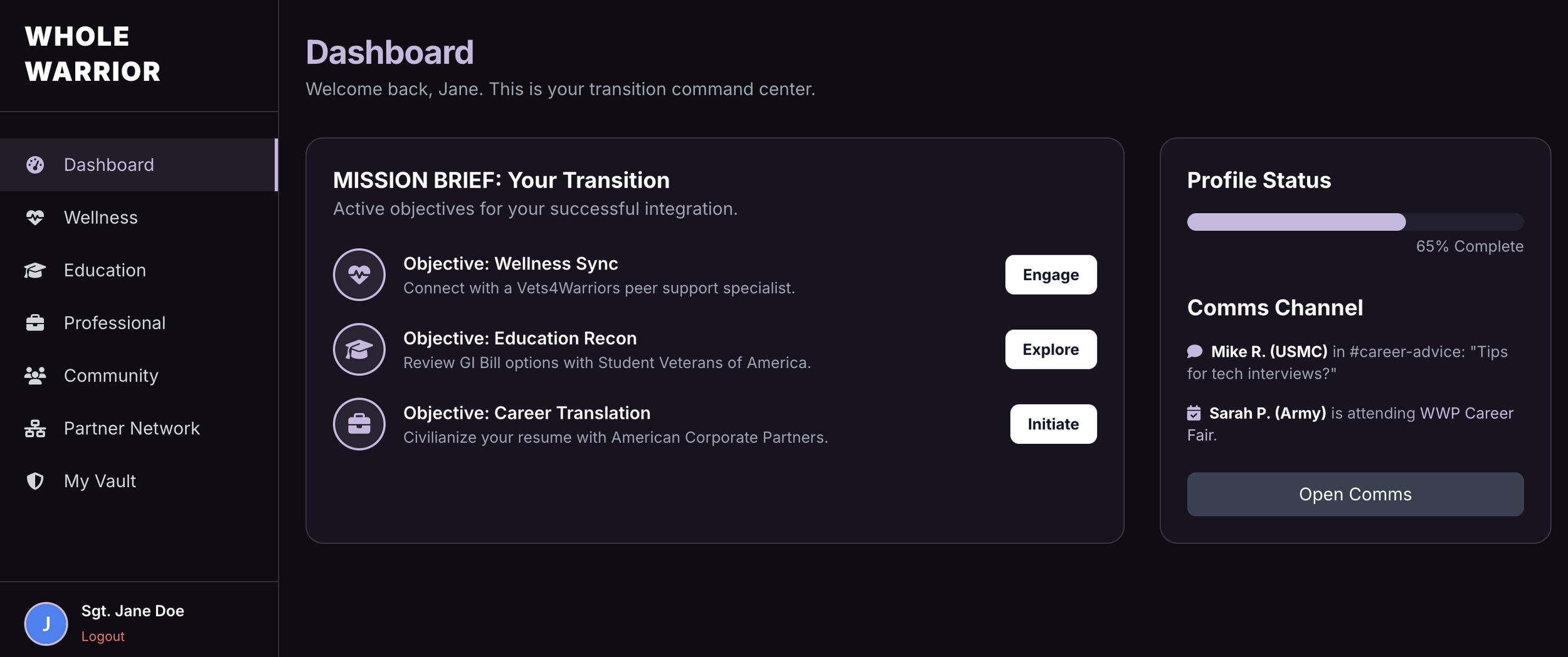WWP is a centralized systems integrator for the fragmented veteran and first responder support ecosystem. We unify best-in-class services into a single, trusted, human-centered experience.